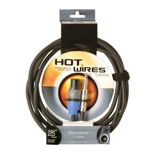 Hot Wires Speakon to 1/4 Inch Speaker Cables - 10 FeetHot Wires speakon to 1/4 inch speaker cables with Neutrik® NL2 Connectors provide you with a high quality, vital tool for live sound! This cable that can withstand being tugged, stepped on, twisted, pulled, and dragged, yet still perform every time as if it was the first time. Twist-lock Speakon connectors are quickly becoming the standard pro audio connection at all levels. These Hot Wires cables use authentic Neutrik NL2FC connectors to terminate 14-gauge wires for use with high-power speakers and amplifiers. Hook and Loop cable tie included.A Cable To Count On!Hot Wires cables have strength and durability to handle all the abuses that go with the business while delivering pristine, noise-free audio. You don’t have to worry about these cables giving you interrupted sound, static, or loss of quality during an important gig. Hot Wires provide quality sound and construction that you can rely on!Hot Wires cables come with a Lifetime Warranty!